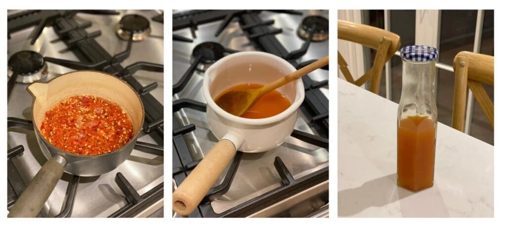 I blitzed freshly picked rosehips in a food processor first, then transferred-them-to-a-saucepan, added water and brought to the boil and then simmered for 30-minutes. I then strained the rosehips, seeds & all the irritant hairs out through a double layer of muslin and added honey as the mixture cooled. I then bottled & refrigerated the syrup.